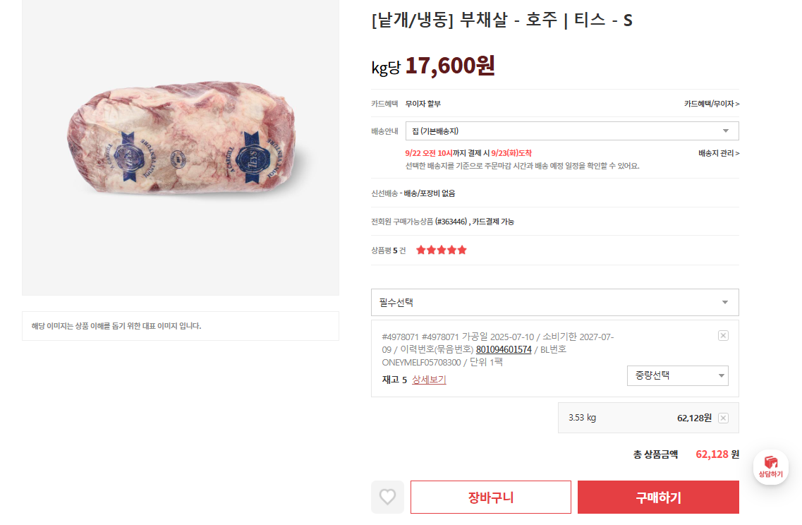 저 같은 경우는 소고기 원물(손질 안 된거)을 구매합니다.