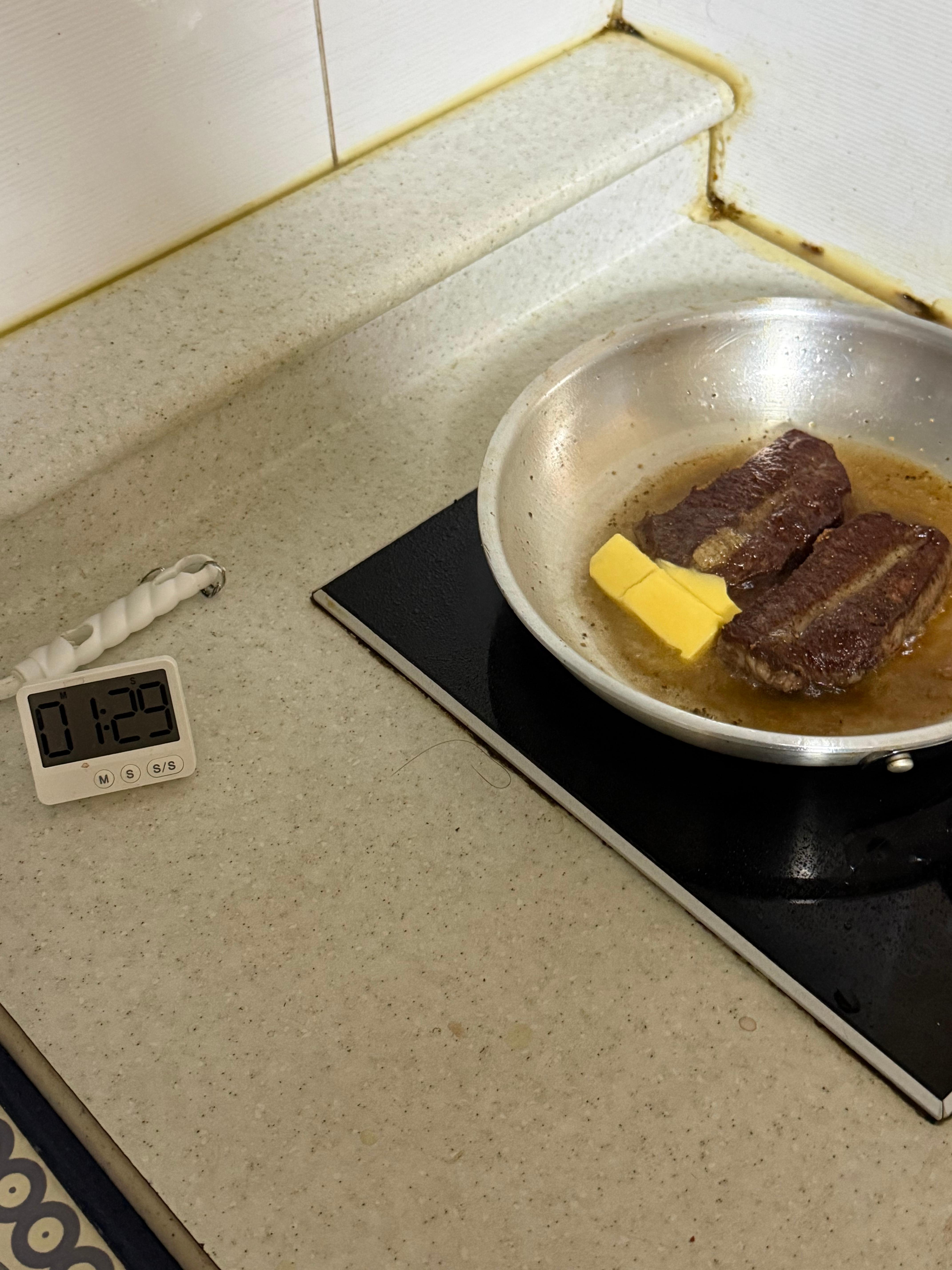 추후에 레스팅도 할 거라서, 1분에 한번씩 뒤집어 주면서 구워줄 겁니다.